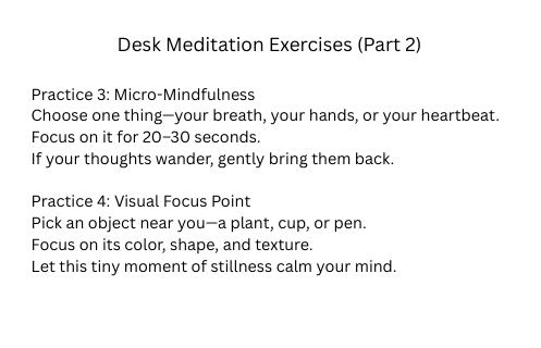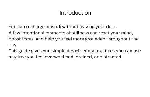 A quick guide with simple mindful breaks designed to help you stay calm, focused, and productive.